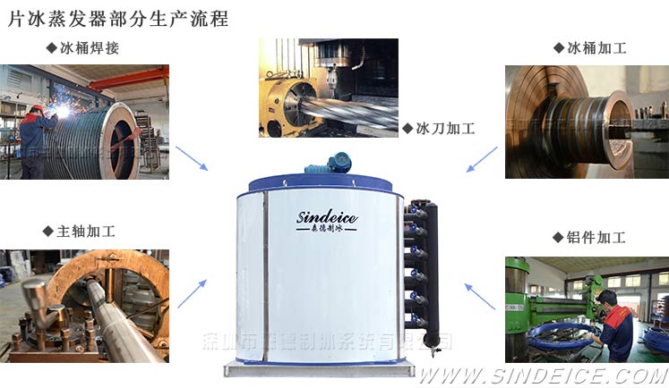 片冰機可分三部分:熱交換裝置、水循環(huán)裝置、刮冰裝置等其他組件。